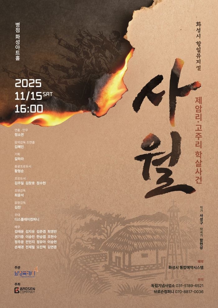 이번 공연은 광복 80주년을 기념하는 경기도 기념문화사업으로 선정돼, 화성특례시가 추진 중인 ‘지역 정체성 기반 문화정책’의 핵심 방향성과도 맞닿아 있다. 특히 지역의 역사와 정체성을 담은 창작 콘텐츠로서, 시민들에게 자부심과 감동을 동시에 선사할 것으로 기대된다.