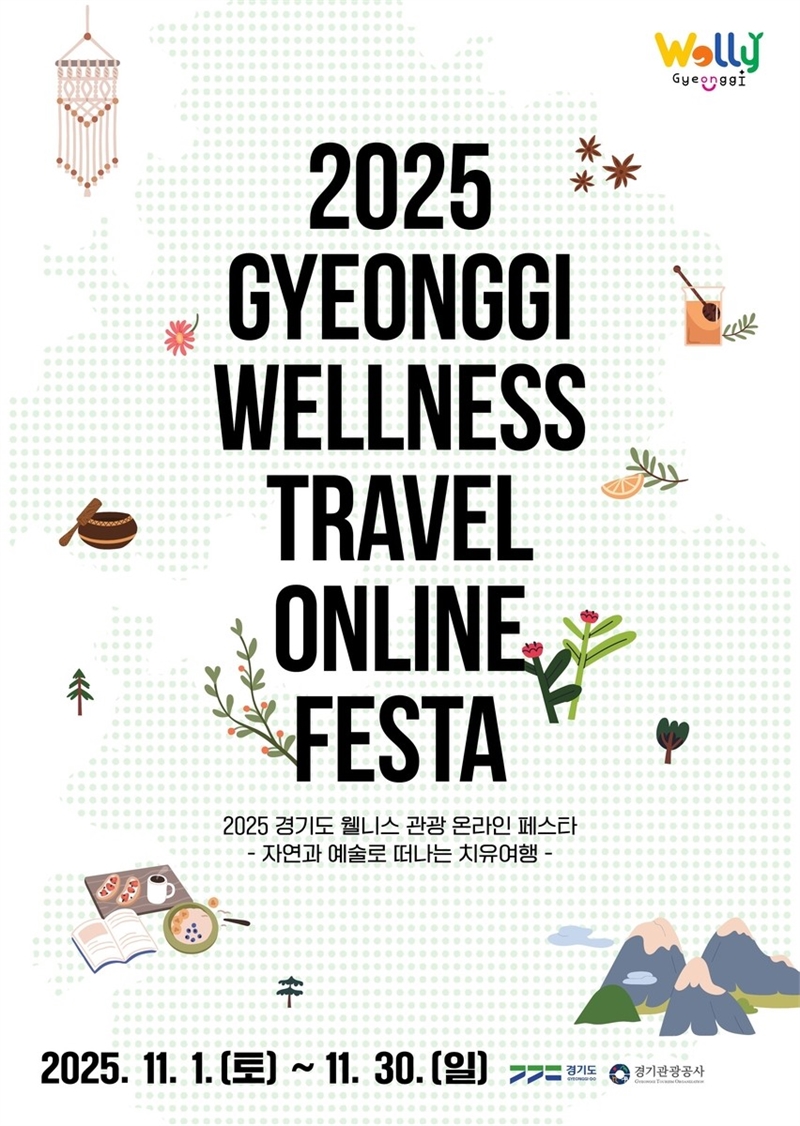 경기도와 경기관광공사는 오는 11월 1일부터 30일까지 한 달간 도내 웰니스 관광지 9곳을 대상으로 최대 6만 원의 할인 혜택을 제공하는 ‘2025 경기도 웰니스 관광 온라인 페스타’를 진행한다고 밝혔다.