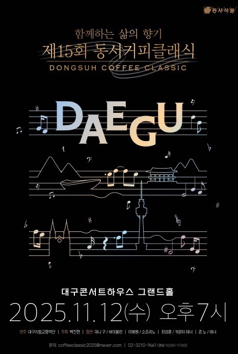 동서식품은 오는 11월 12일 오후 7시 대구콘서트하우스 그랜드홀에서 ‘제15회 동서커피클래식’을 개최한다고 밝혔다.
