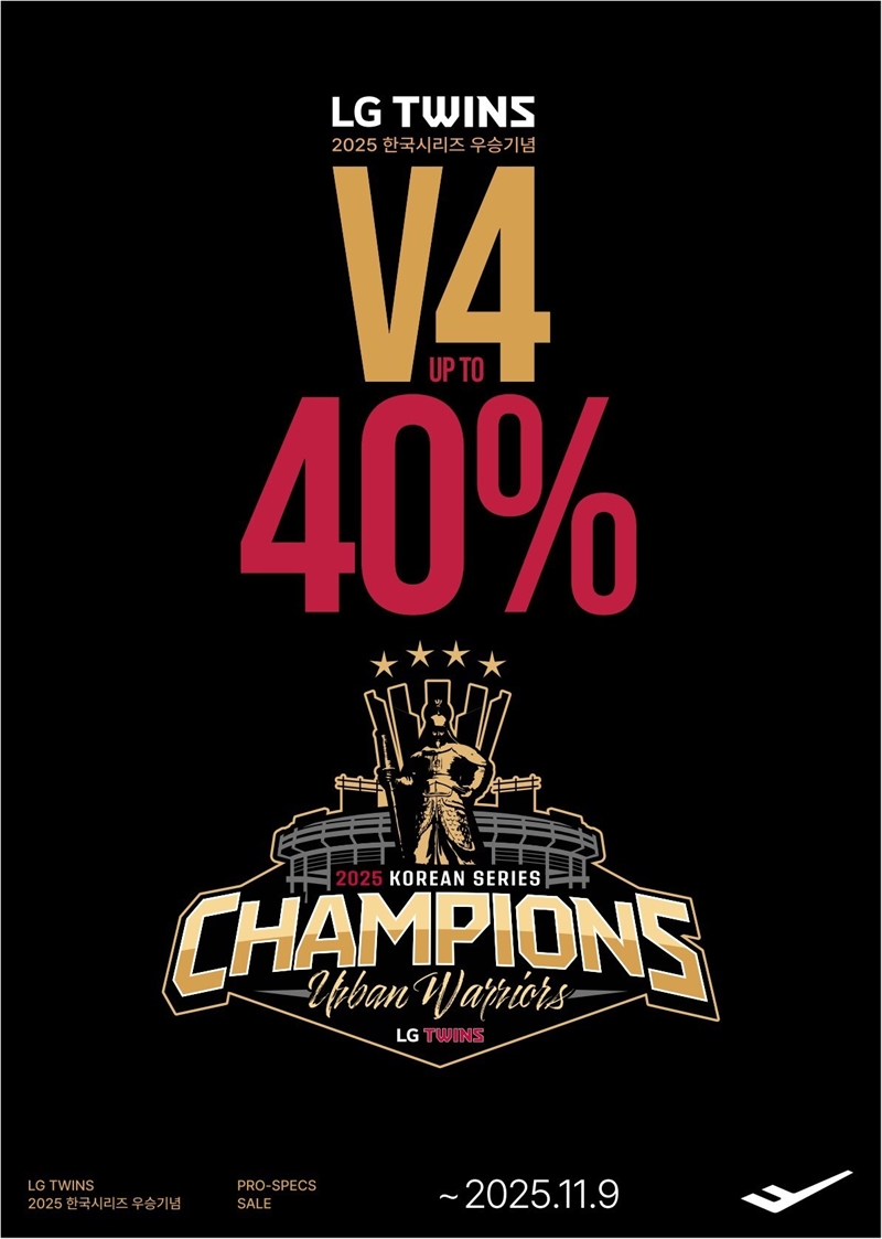 프로스펙스가 LG트윈스의 2025년 KBO리그 통합 우승을 기념해 9일까지 FW 상품과 LG트윈스 어센틱 제품을 최대 40% 할인하는 ‘우승기념 프로모션’을 진행한다. 이번 행사는 LG트윈스를 공식 후원하는 브랜드로서 팬과 소비자가 함께 우승의 기쁨을 나누기 위해 마련됐다.