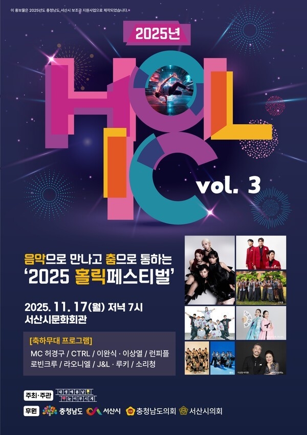 충남 서산에서 어르신의 인생을 기록하고 청소년과 시민이 공연으로 마음을 나누는 ‘2025 홀릭 페스티벌’이 열린다. 사단법인 내생애봄날 눈이부시게는 오는 11월 17일 저녁 7시 서산시문화회관에서 ‘음악으로 만나고 춤으로 통하는’이라는 슬로건 아래 세대 공감형 문화축제를 개최한다고 밝혔다.