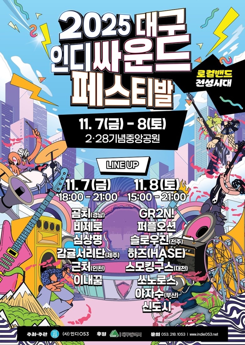 대구시는 오는 7~8일 이틀간 2.28기념중앙공원 중앙무대에서 ‘2025 대구인디싸운드페스티벌’을 개최한다.