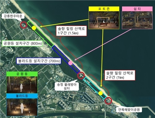 이어 2차 구간인 송정물레방아쉼터에서 안목해맞이공원까지 약 1㎞ 구간에도 2026년 내 야간 포토존과 볼라드등을 추가 설치할 계획이다. 기존 쉼터와 벤치를 활용해 휴식과 관광을 동시에 즐길 수 있는 야간 명소로 재정비한다는 구상이다.