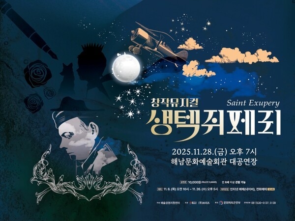 전남 해남군은 28일 오후 7시 해남문화예술회관 대공연장에서 창작 뮤지컬 ‘생텍쥐페리’ 공연을 연다. 이번 작품은 초연 당시 전석 매진을 기록하며 작품성과 대중성을 입증한 창작 뮤지컬로, 지역 관객들에게 높은 기대를 모으고 있다.