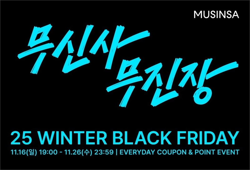 무신사는 16~26일 온·오프라인 통합 할인 캠페인 ‘무신사 무진장 25 겨울 블랙프라이데이(무진장 블프)’를 진행한다고 밝혔다. 이번 행사는 무신사 연간 최대 규모의 할인 행사로, 국내외 4천500여 개 브랜드가 참여해 60만 개가 넘는 상품을 할인 판매한다.