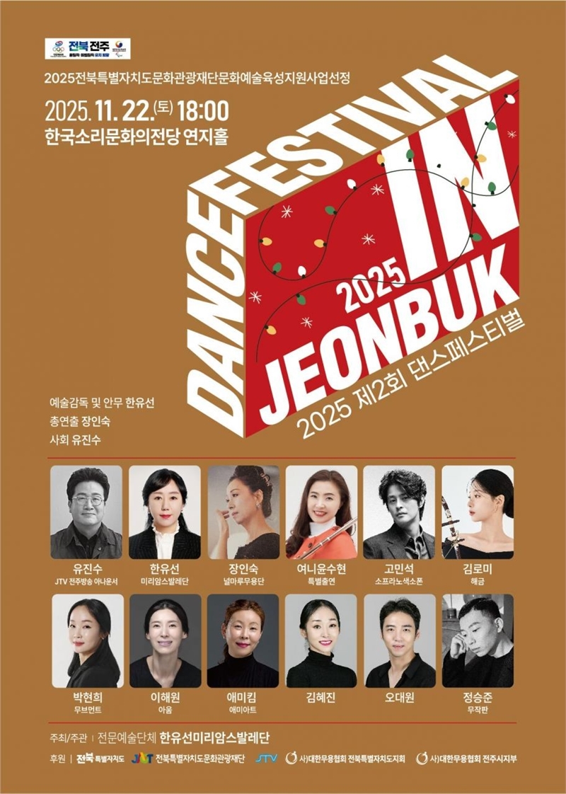 이번 행사는 전북 무용계의 교류 확대와 지역 예술 생태계 활성화를 목표로 마련됐으며, 다양한 장르가 어우러진 무대 구성으로 도민들의 문화 향유 기회를 넓히는 계기가 될 전망이다.
