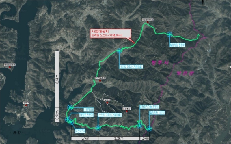 청주 구간은 상당구 문의면 소전리·문덕리·묘암리·마동리를 연결하는 16㎞ 구간으로 조성됐다. 시는 총 10억원의 사업비를 투입해 탐방로 정비와 함께 전망 공간, 쉼터, 이정표, 안내판 등 이용 편의를 위한 시설을 갖췄다.