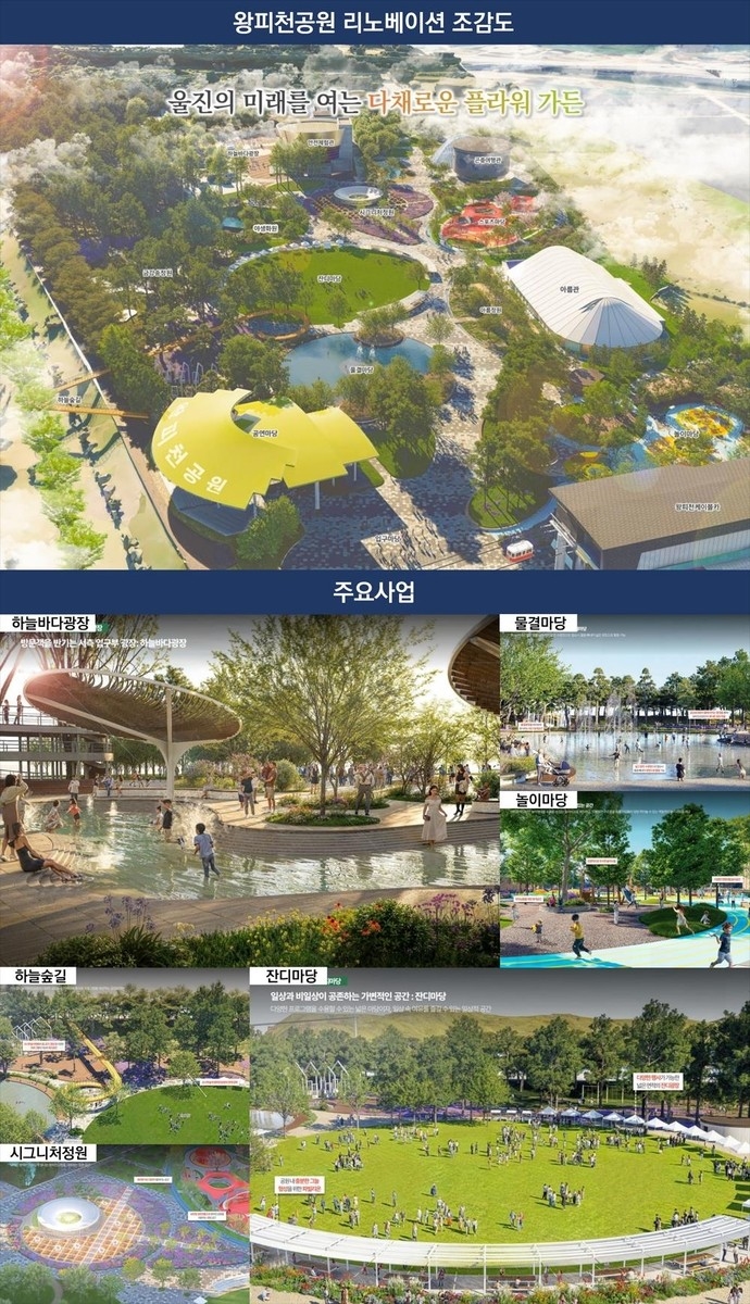 왕피천 하류에 자리한 왕피천공원은 군민과 관광객이 많이 찾는 지역 명소지만 오래된 시설에 대한 정비 필요성이 꾸준히 제기돼 왔다. 울진군은 이번 개편을 통해 하늘바다광장, 놀이마당, 잔디마당, 하늘숲길, 대표정원 등을 새롭게 조성하고 부족했던 편의시설을 확충할 계획이다.