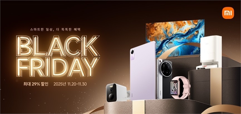 샤오미코리아는 블랙프라이데이 시즌을 맞아 오는 30일까지 ‘2025 블랙프라이데이 프로모션’을 진행한다고 밝혔다. 이번 행사에서는 최신 스마트폰·패드·웨어러블·스마트홈 기기 등 다양한 제품을 최대 29% 할인된 가격으로 선보인다.