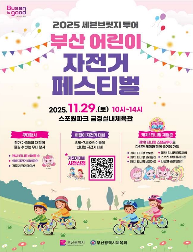 부산시는 오는 29일 오전 11시 스포원파크 금정실내체육관에서 ‘2025 세븐브릿지 투어’와 연계한 ‘부산 어린이 자전거 페스티벌’을 개최한다. 이번 행사는 세븐브릿지 투어의 성과를 시민과 미래세대에 확장하고, 가족이 함께 즐기는 생활체육 문화를 확산하기 위해 마련됐다.