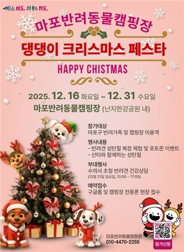 박강수 마포구청장은 “마포반려동물캠핑장은 개장 이후 반려 가족들이 즐겨 찾는 명소로 자리 잡았다”며 “이번 댕댕이 크리스마스 페스타를 통해 반려동물과 함께 따뜻한 연말의 추억을 남기시길 바란다”고 말했다.