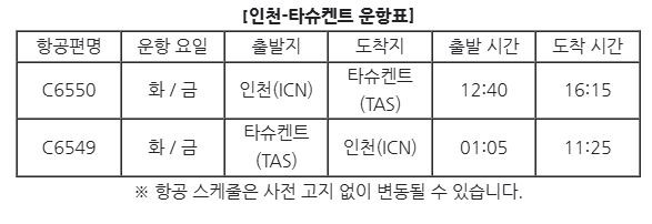 특히 타슈켄트를 경유하는 노선 운영을 통해 러시아와 튀르키예(이스탄불) 등 다양한 지역으로의 연계 이동이 가능해, 여행 목적과 일정에 따라 폭넓은 선택지를 제공하고 있다는 평가다.