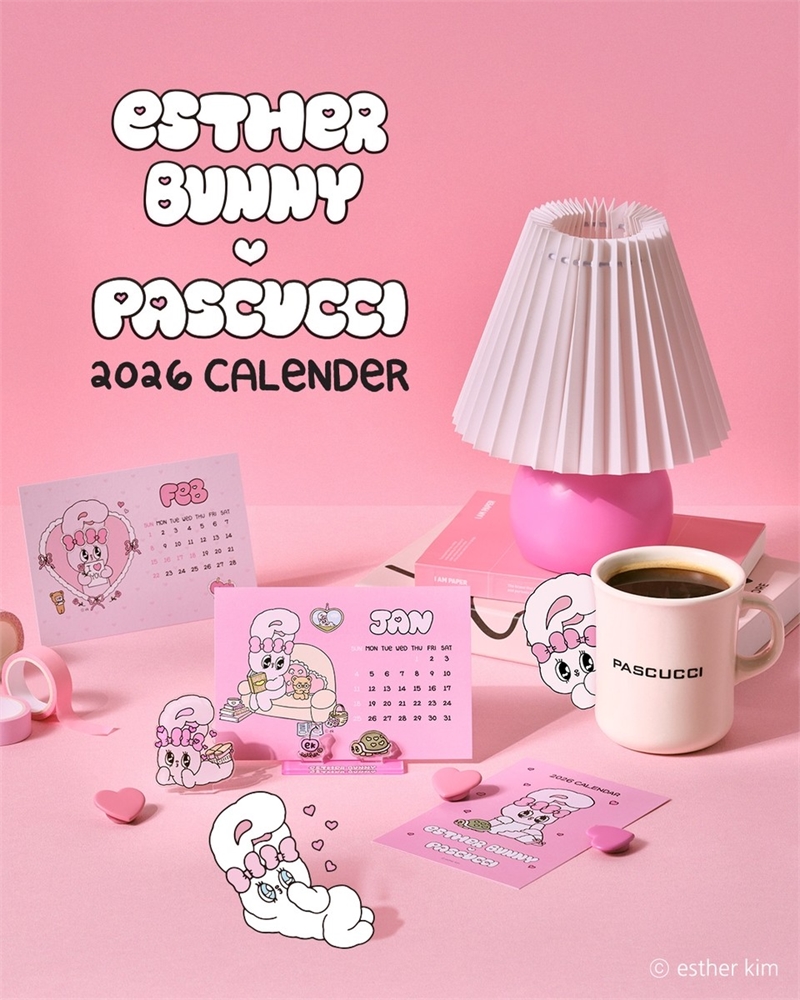 에스더버니는 일러스트레이터 에스더 김이 만든 토끼 캐릭터로, 따뜻한 메시지와 귀여운 디자인으로 폭넓은 팬층을 보유하고 있다. 이번 파스쿠찌 에스더버니 캘린더는 엽서형 캘린더와 아크릴 스탠드로 구성됐으며, 에스더버니 특유의 핑크 컬러와 키치한 감성을 담아 일상 속에서 소소한 설렘을 전하는 것이 특징이다.